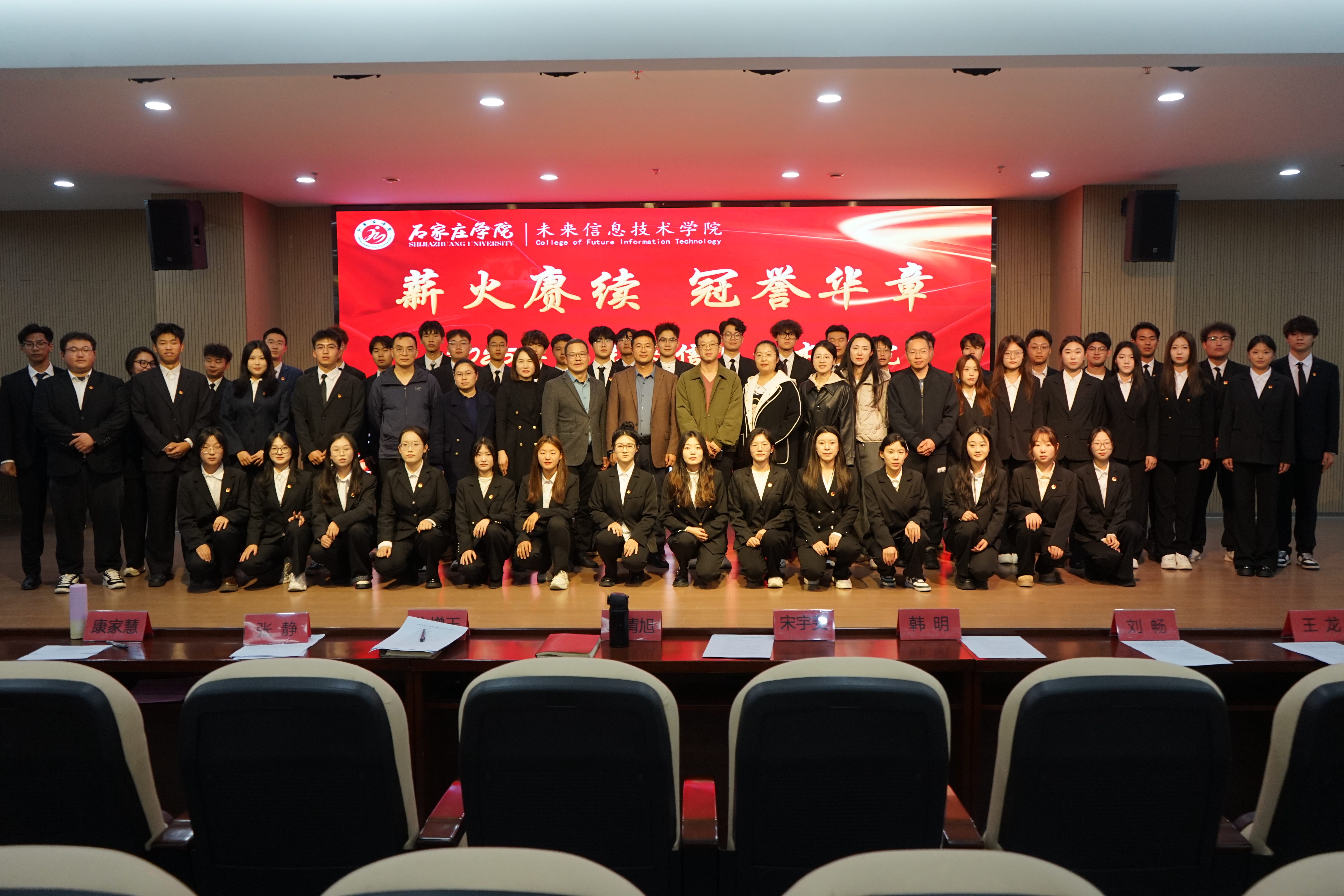 为深入贯彻落实学校“1396”发展战略,全面总结学生工作成果,选树典型、表彰先进,激励学生奋发进取、再创佳绩,未来信息技术学院于11月12日召开2025年度学生工作总结表彰暨学生分会换届大会。学院领导班子成员、教研室主任、团总支书记、辅导员及全体学生骨干参加会议。