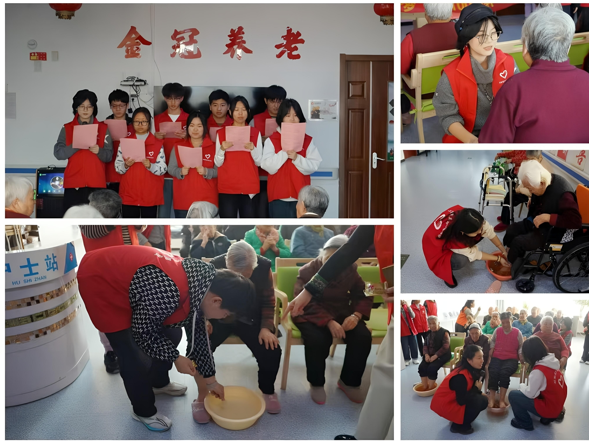 寒冬至始,暖意相襄。金冠老年公寓内处处洋溢着欢声笑语,相关组织负责人为老人们捐赠了泡脚片,我院志愿者积极承担服务工作,协助老人们准备用品,陪护他们完成泡脚体验。同时,志愿者们为老人们献上精心编排的文艺节目,包括歌曲《外婆的澎湖湾》《夜空中最亮的星》以及诗朗诵《时光暖行:敬老是根,志愿是光》等,充满温情的表演赢得了老人们阵阵掌声。表演结束后,志愿者跟老人们亲切交谈,倾听他们讲述过往岁月的故事,分享生活中的点滴感悟,耐心回应老人生活中的疑问和困惑,现场呈现一派其乐融融的温馨场景。