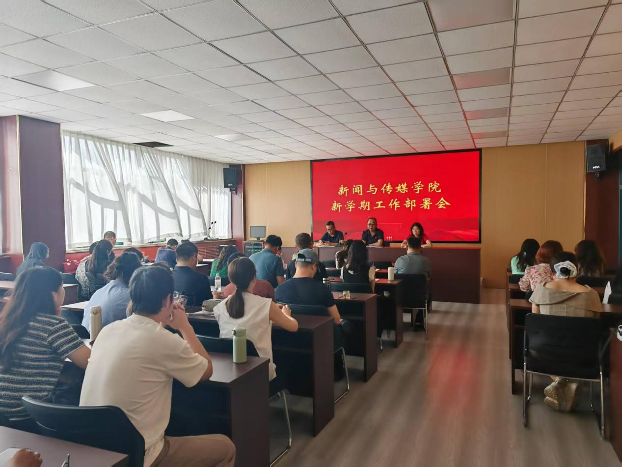 9月7日上午,新闻与传媒学院召开新学期全院教职工大会,传达学校近期重要会议精神,全面总结上半年工作,并就新学期的重点任务进行动员和部署。会议由学院党总支书记尚三虎主持。