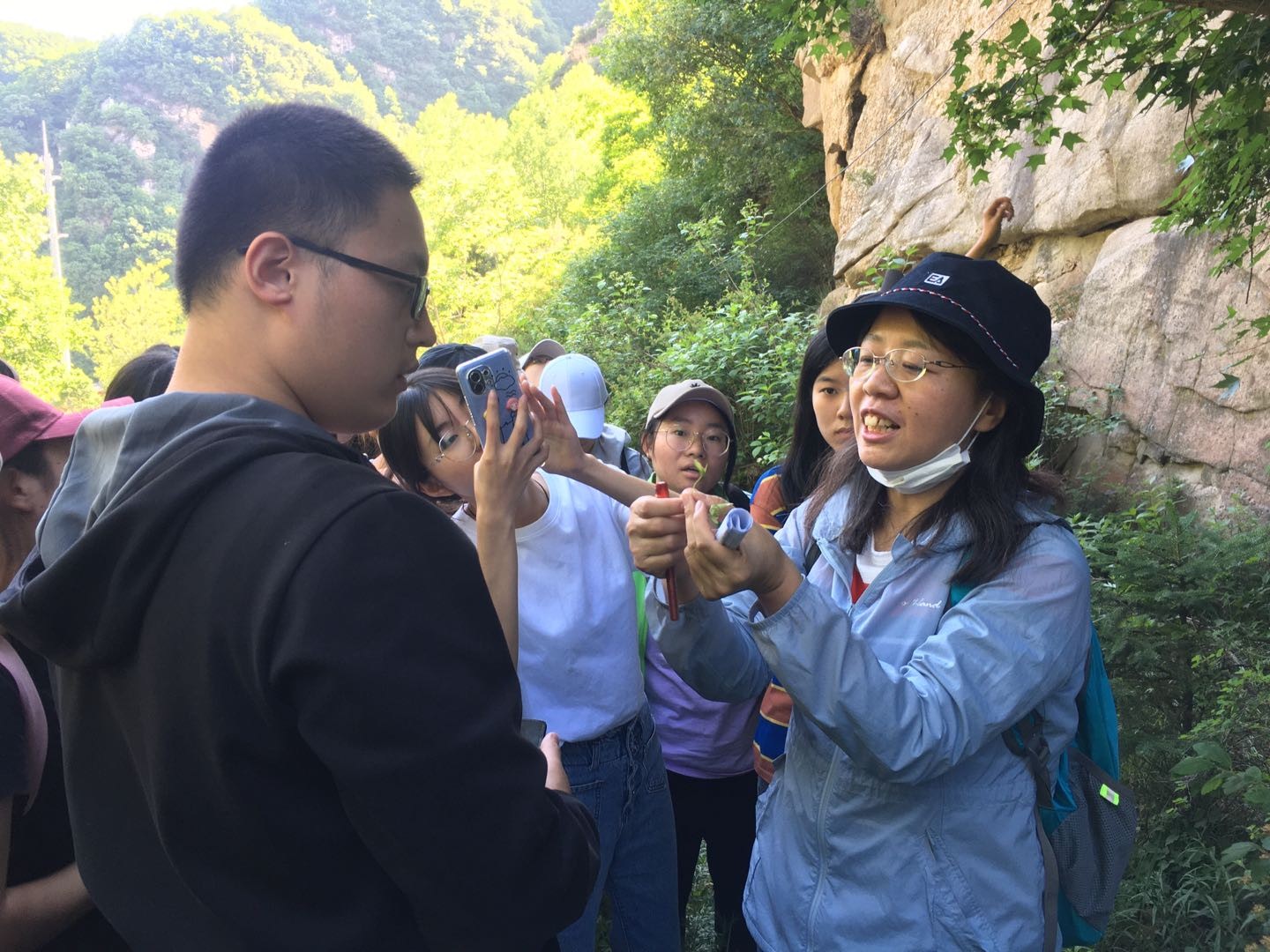 在生物地理学实习中,韩晨霞与郑红娟两位老师带领学生根据植物不同特点辨认植物种类,对于不同海拔的植物分布进行规律性划分与总结;通过野外植被调查方法——样地法,以小组合作形式对野外森林群落进行了植物种分布特征调查,印证了山地植被垂直分布特征规律及环境对其分布的影响等书本知识,使得学生对森林群落调查研究方法的掌握更加熟练,同时也巩固了学生的专业知识与技能。在土壤地理学实习中,李峻峰老师介绍了土壤剖面挖掘的注意事项,带领大家通过对山地土壤剖面的观察、讨论与分析,向学生讲解各土壤发生层的颜色、质地、结构、湿度等专业性知识,加强了学生对野外鉴别和划分土层的能力。